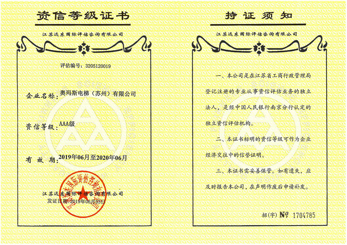 2019AAA资信等级证书