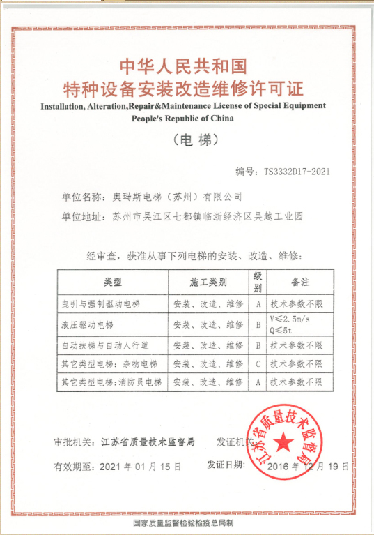安装改造维修许可证