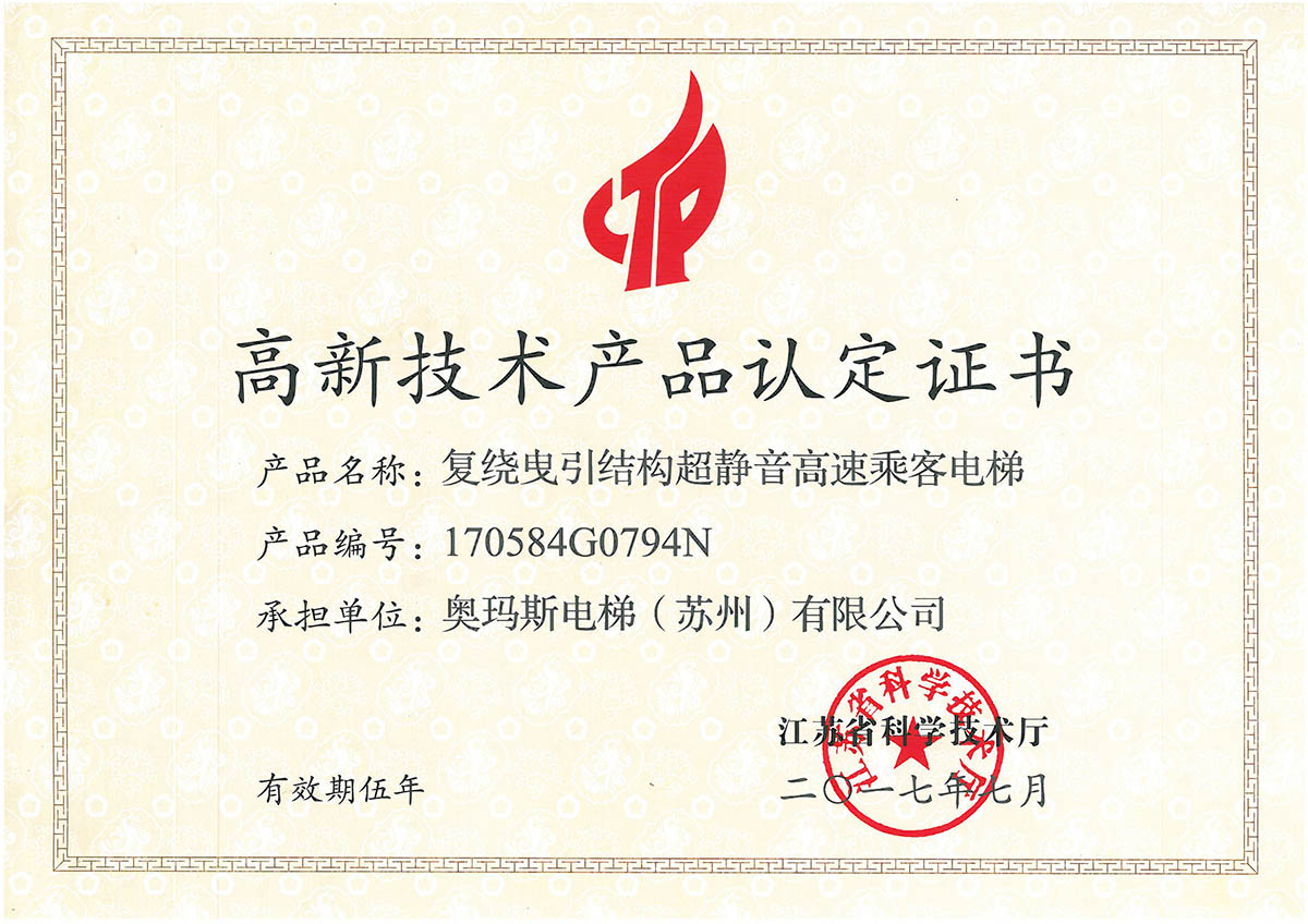 乘客电梯高新技术产品证书