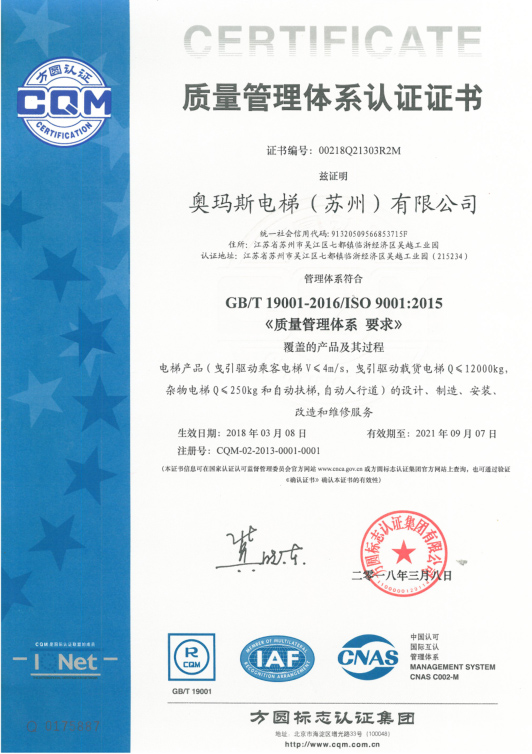 质量管理体系认证证书