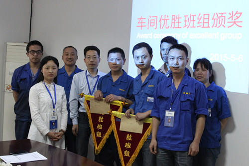 5月6日下午,在公司培训中心举行了第一次车间优胜班组颁奖典礼,由公司副总李金伟给优胜班组代表颁奖。下图为颁奖仪式现场相关人员合影。