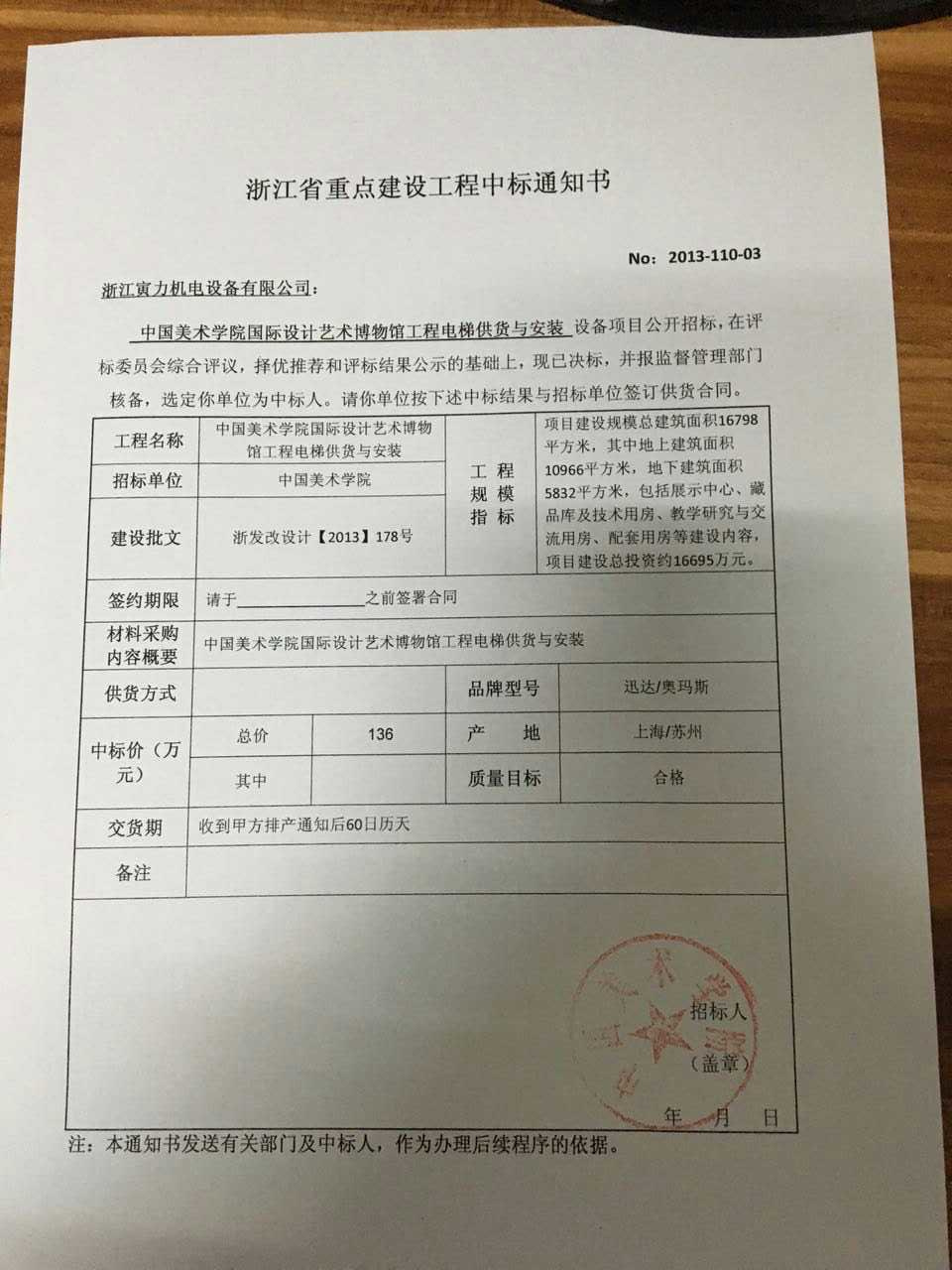 近日,在乐鱼注册-乐鱼(中国)销售合作方――浙江寅力的全力运作下,乐鱼注册-乐鱼(中国)公司中标中国美术学院国际设计艺术博物馆工程部分电梯项目的供货与安装。其中博物馆内数部5T无机房载货电梯均由乐鱼注册-乐鱼(中国)电梯公司提供。在不久的将来,“乐鱼注册-乐鱼(中国)”与“迅达”两大品牌将同时亮相中国美院博物馆,为我们的客户提供完美的乘载服务。