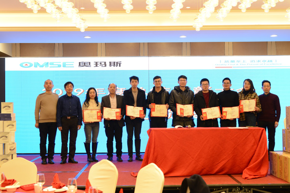 本届大会分为三个议程有序进行。第一议程是由公司的潘总、李总、张总分别向全体员工作年度工作汇报;第二议程是对获得2019年度安全生产优胜的班组进行表彰,受表彰的班组有:电焊组、电控组、仓库组、发运组、喷漆组,综合管理部、工程服务部 ;第三议程是对荣获2019年度优秀员工进行表彰,2019年度中经无记名投票选举产生8名优秀员工,分别是沈丽芬、孟建忠、邱丽芳、杨俊,周云益、沈国强、张建新、杨力东。公司潘总与张总分别向获奖者颁发了奖金与证书。在欢快地颁奖音乐声中,8名优秀员工与公司高层合影留念。最后环节是杨俊与杨力东二位获奖者分别代表行政、车间发表了获奖感言。