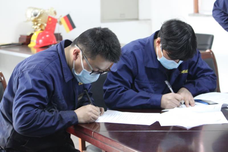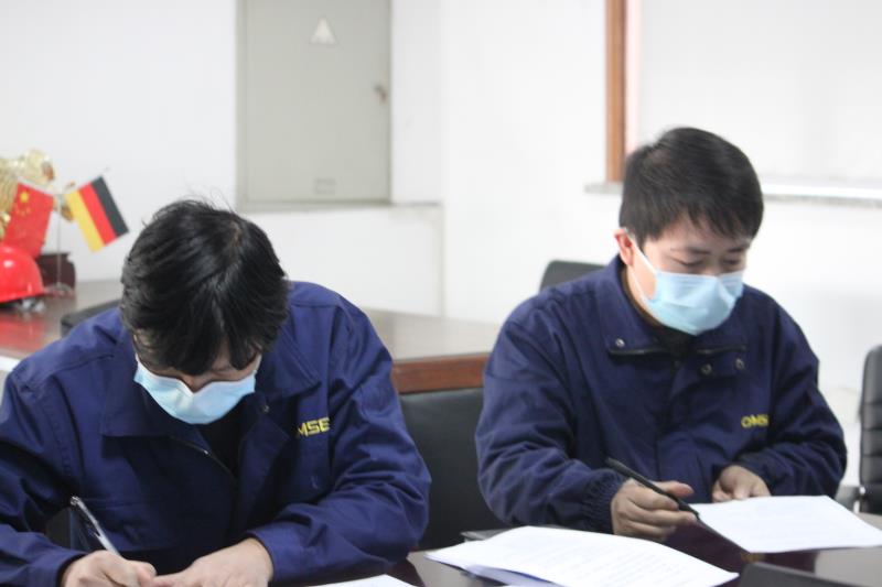 会议最后一个议程是潘总分别与各主要部门的负责人当场签订了 “2020年度安全责任书” (部门级)(见附图),然后由生产部经理与生产班组组长签订“2020年度安全责任书” (组科级)(见附图)。我们通过“责任书”的形式按层级落实中层员工的管理责任,明确“做好就奖、做不好就处罚”的奖罚分明机制。要求做到层层分解、全员参与,利益相关,做到在日常生产活动时刻绷紧安全生产这根弦,要人人关心消除不安全因素,不出安全事故。